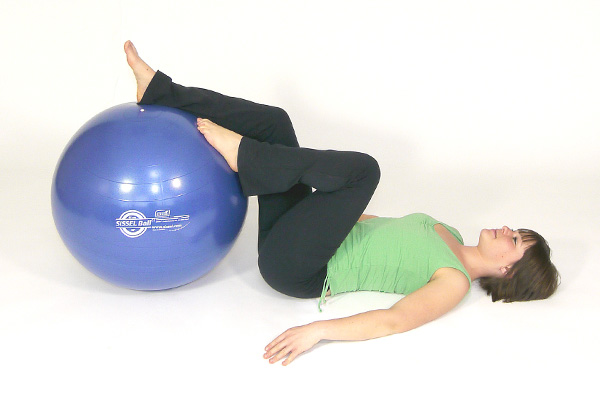 - Du liegst entspannt mit dem Rücken auf einer Gymnastikmatte. Beide Unterschenkel liegen parallel auf dem Ball auf. Deine Knie- und Hüftgelenke sind annährend rechtwinkelig gebeugt. Die Arme liegen neben dem Körper.