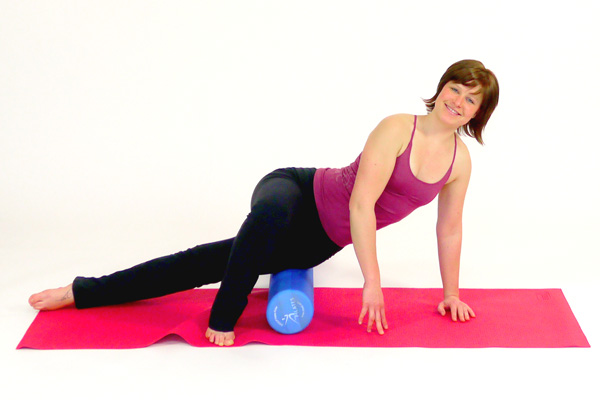 Seitstütz Übung bzw. Ganzkörperübung mit dem Pilates Roller.