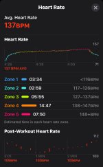 Mowing the trim on our 1 acre lot is a weekly workout. Today I used “mixed cardio” function on my Apple Watch because I never used it before & it sounds way cooler than “Other” LOL. I remember my wife brought me a 1/2 litre bottle of water when I was about 1/2 way complete. The dip in my heart rate is noticeable on the graph.