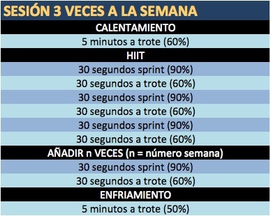 | HIIT en caminadora | 10 min | Intervalos 1min |